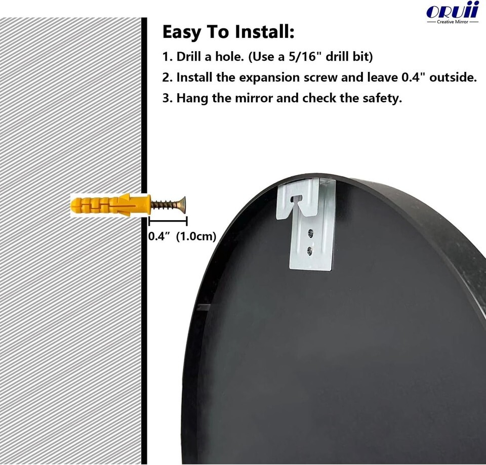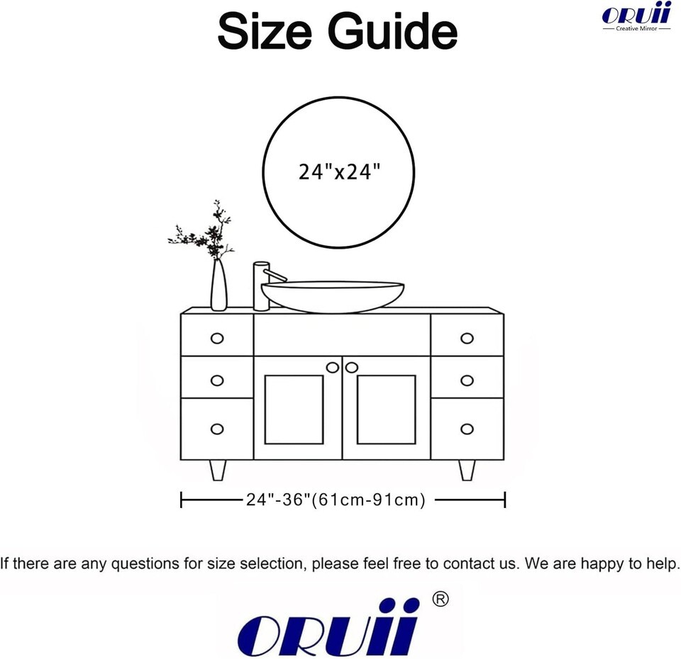 - 24" Round Black Mirror - Rustproof Metal Frame for Bathroom & Living Room