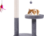 - 24" Scratching Post, Interactive Cat Scratcher, with Perch & Plush Toy, Sturdy W