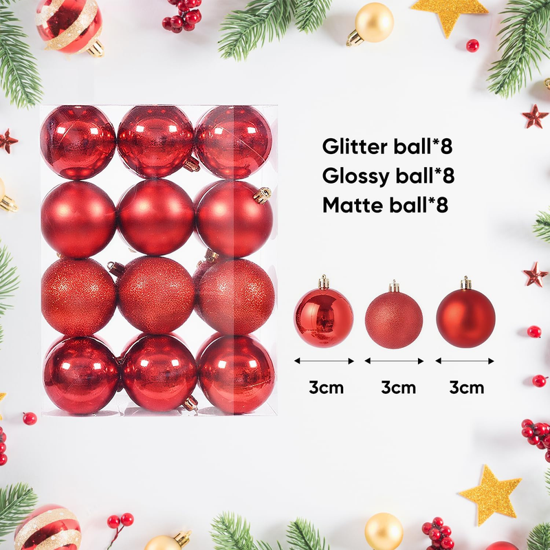24Ct Christmas Balls Ornaments for Xmas Christmas Tree - Shatterproof Decor Hang