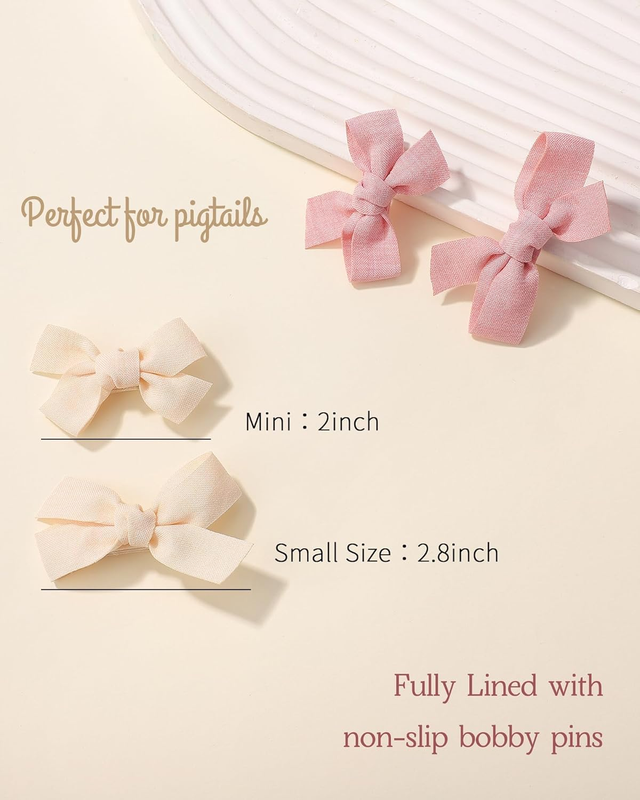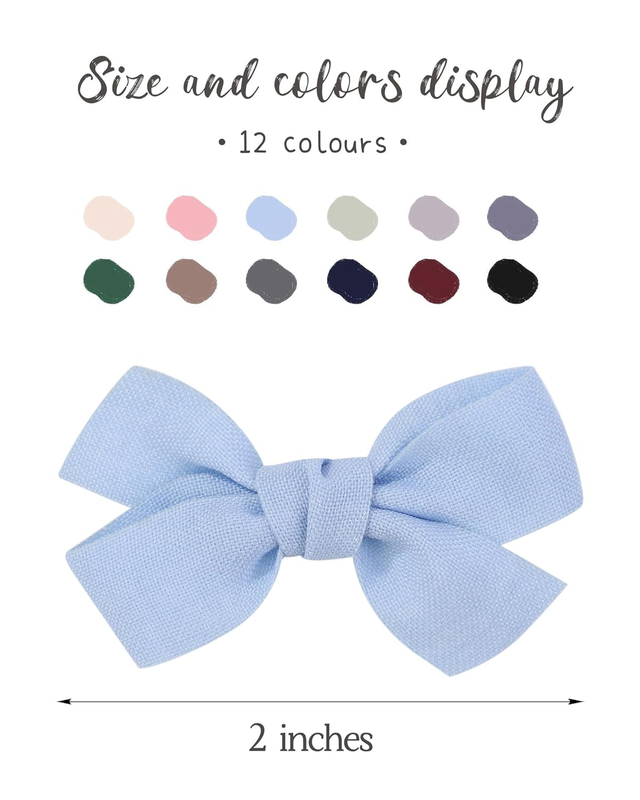 SMALL HAIR BOWS CLIPS:The hair bows for girls are 2 inches and it is glued to the fully lined hair clips in the same color steadily. These bow clips for baby girls can be well fixed on the baby's fine hair, NOT HURT BABY.