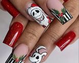- 24Pcs Christmas Press On Nails Medium Square Acrylic False Nails Xmas Design