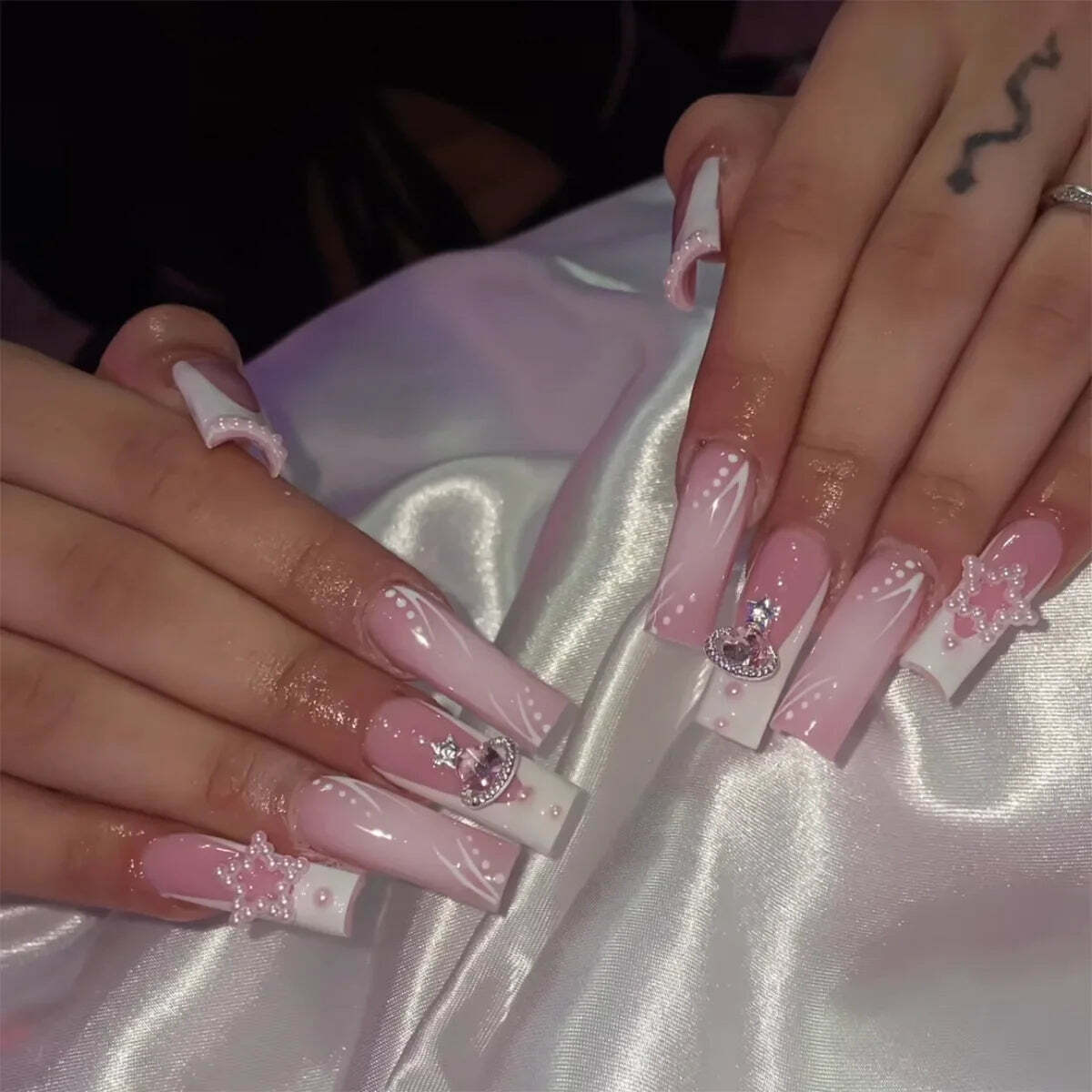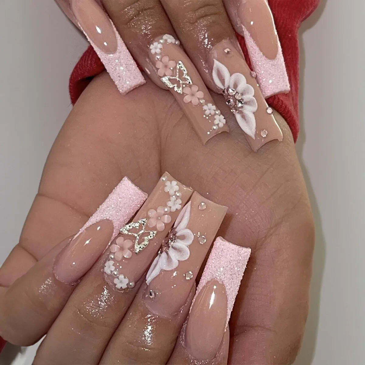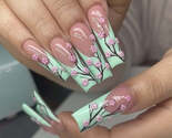 - 24Pcs Extra Long Square Fake Nail with Glue 3D Little Bear Bow Design False Nail