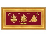 24ct Pure Gold Leaf Lakshmi, Ganesha Saraswati Frame 24.4 x 12.7cm