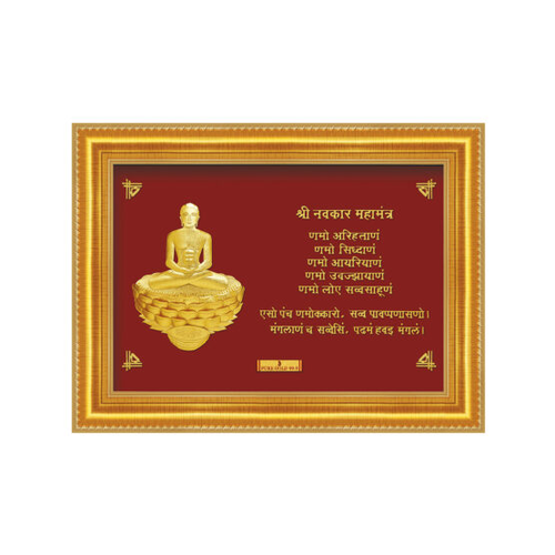 - 24ct Pure Gold Leaf Mahavir Mantra Frame 25.4 x 19cm