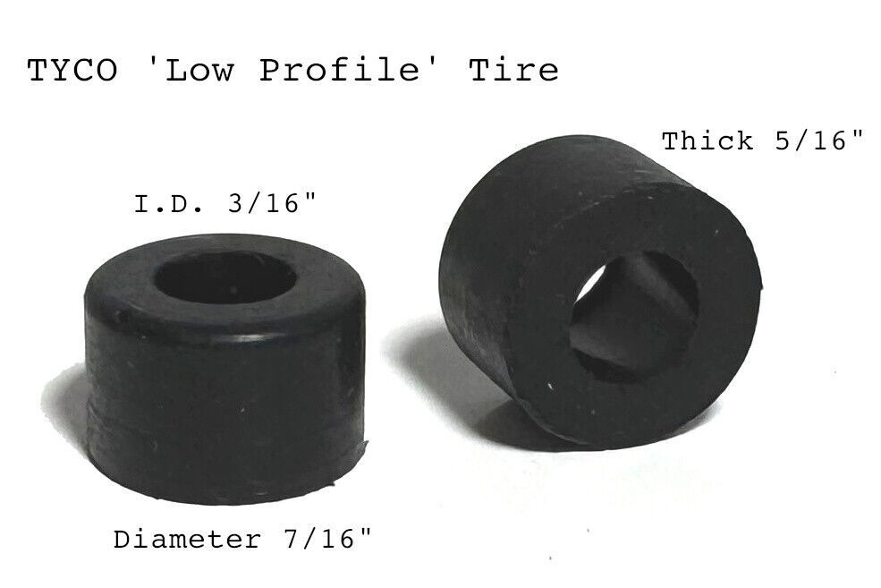 This listing is for TWENTY-FOUR (24) of TYCO Malaysia Factory Rear Tires, Lower and Less Wide "Low Profile"