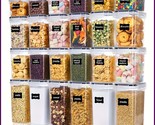 [24pcs BPA Free Containers] 24pcs Airtight Food Storage Containers, BPA Free Plastic RV Kitchen Storage | Dry Food Canisters for Flour, Sugar And Cereal with Labels | Suitable for Home Scenes, Without Battery