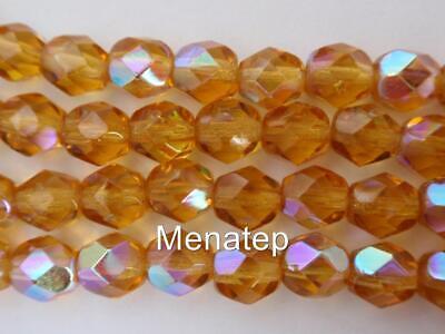 25 6mm Czech Glass Fire Polished Beads: Medium Topaz AB