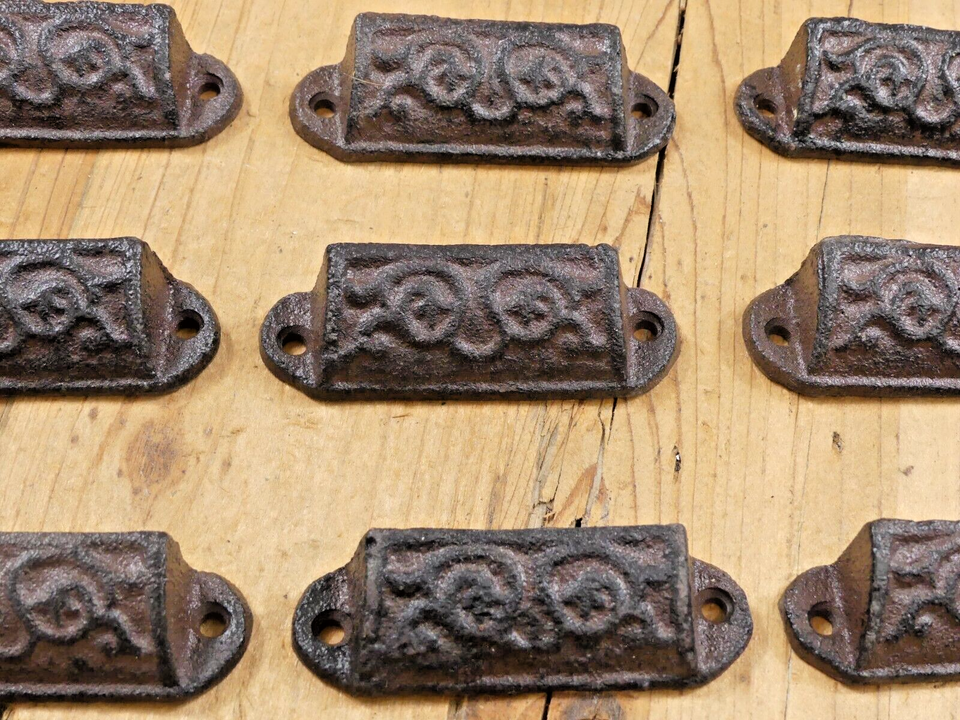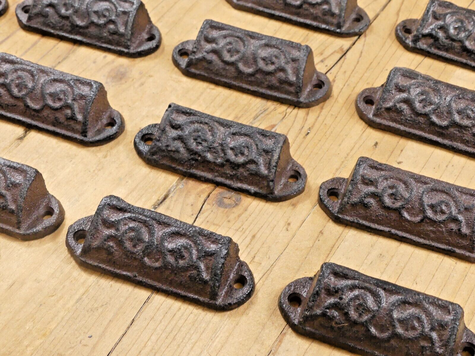 - 25 CAST IRON BROWN 3" ORNATE PULLS DRAWER CABINET BIN HANDLES RUSTIC VINTAGE
