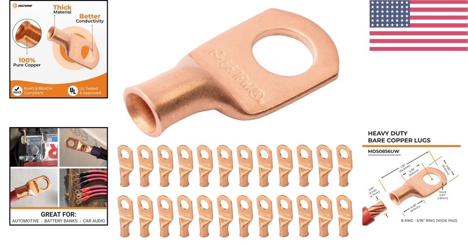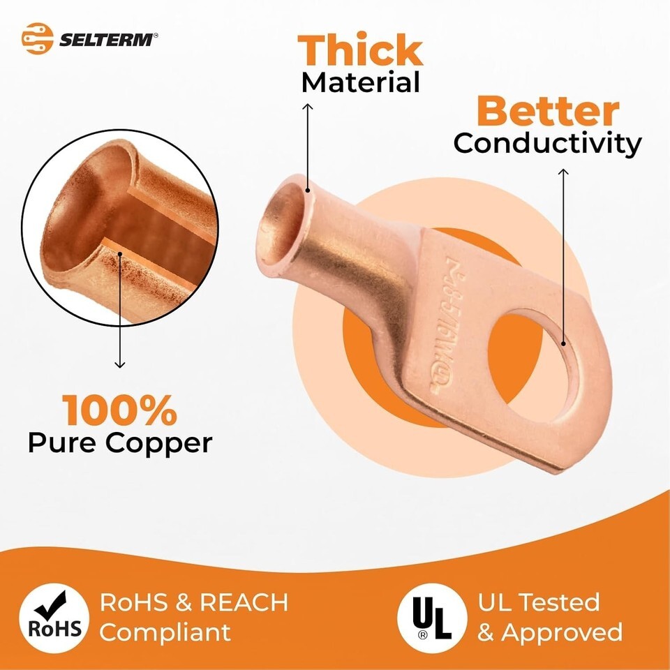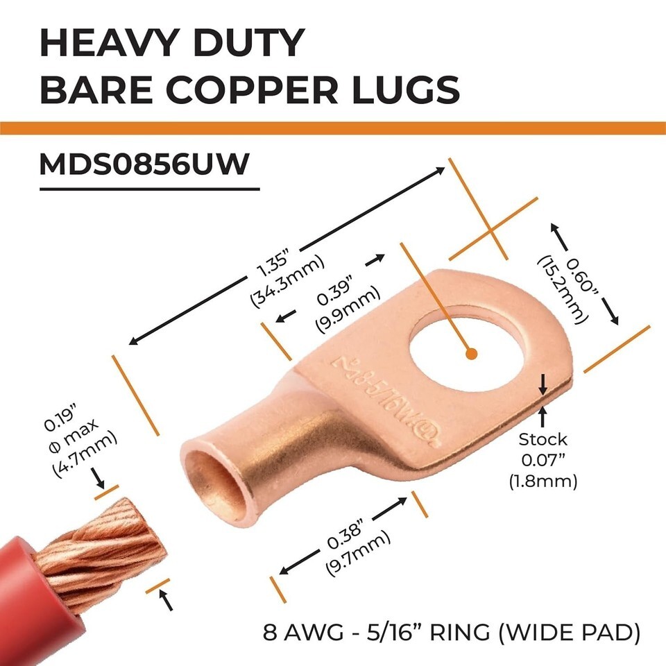 - 25 pcs Waterproof 8 AWG Copper Ring Battery Lugs - Listed Quality