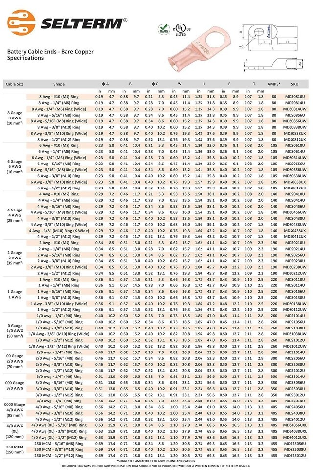 Ideal for Solar Panel systems, Golf Carts, Power Inverters, RV's, Marine applications, Home appliances, and DIY Electrical wiring.