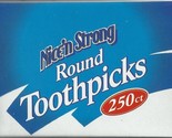 FOR SALE IS ONE (1) NEW BOX OF NICE'N STRONG ROUND WOODEN (WHITE BIRCH) TOOTHPICKS 250 COUNT MPN PENST1143 UPC# 011110892171. FACTORY FRESH NEW SEALED BOX CONTAINER OF ROUND WOODEN TOOTHPICKS IS NEW AND NEVER OPENED, GRAB JUST THE NUMBER OF TOOTHPICKS YOU NEED, NO COLOR, NO ADDITIVES, MADE OF WHITE BIRCH WOOD. TOOTHPICK IS 2.5" LONG, ROUND WITH POINTED TIPS ON BOTH ENDS. GREAT FOR PARTIES, COOKING, BAKING, KITCHEN TABLE, BAR, ORAL CARE, SANDWICHES, CRAFTS, SHOP, DRESS UP COCKTAILS/APPETIZERS, AND HUNDREDS OF OTHER USES. NICE'N STRONG IS ONE OF THE HOUSE BRANDS AT KROGER GROCERY STORE. YOU WILL RECEIVE ONE BOX OF 250 NICE'N STRONG BRAND ROUND WOODEN TOOTHPICKS SHIPPED BY USPS FIRST CLASS MAIL.....
