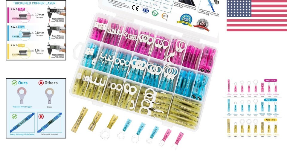Our 250Pcs Automotive Marine Wire Connectors are designed with materials to ensure secure and reliable connections every time. With unique dual-walled waterproof technology and durable tinned copper barrels that resist corrosion, your electrical projects will withstand the of time and elements. No more worrying about connection failures?experience the peace of mind that comes with superior crimp connectors.