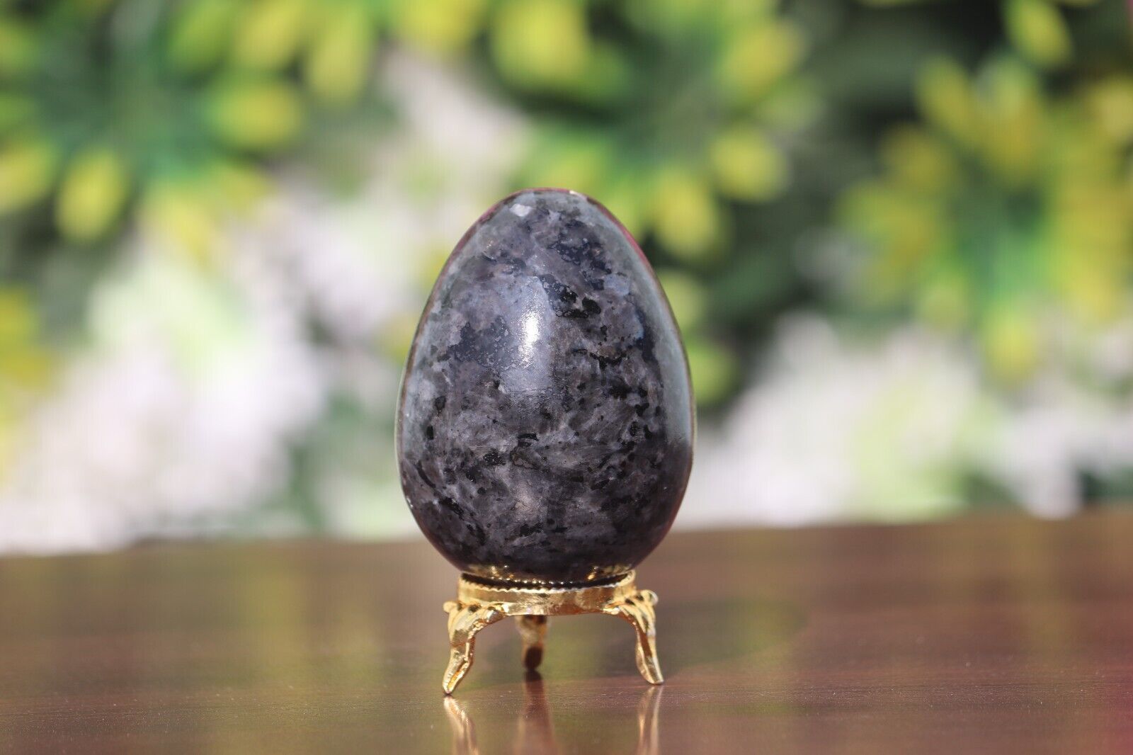 - 255g!-70X50 mm ~Larvikite egg with Stand Blue Flash Labradorite Crystal~