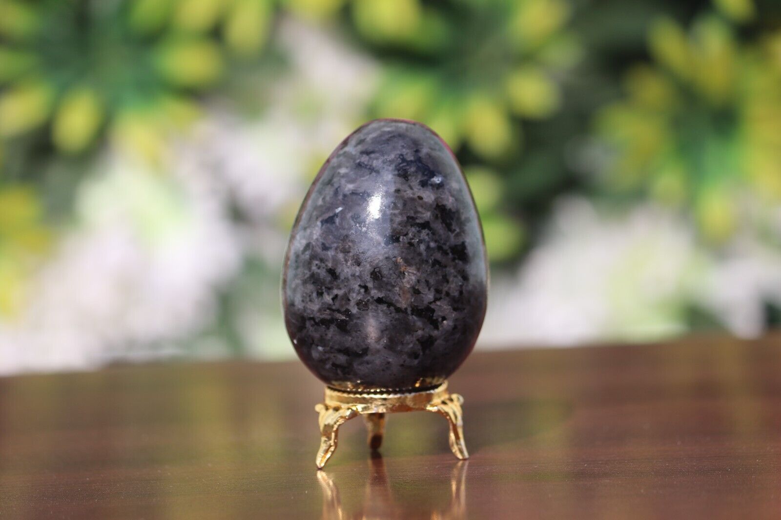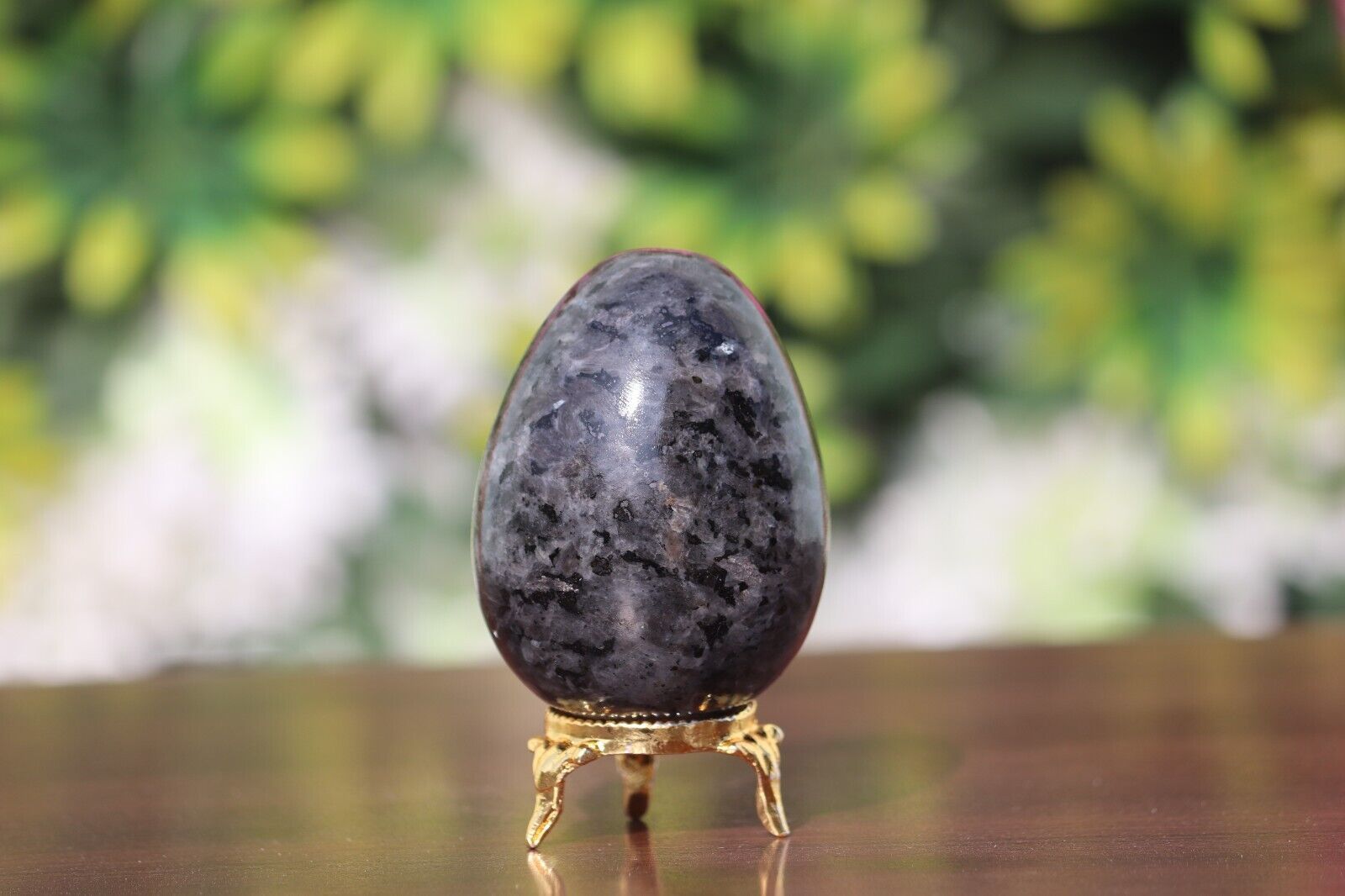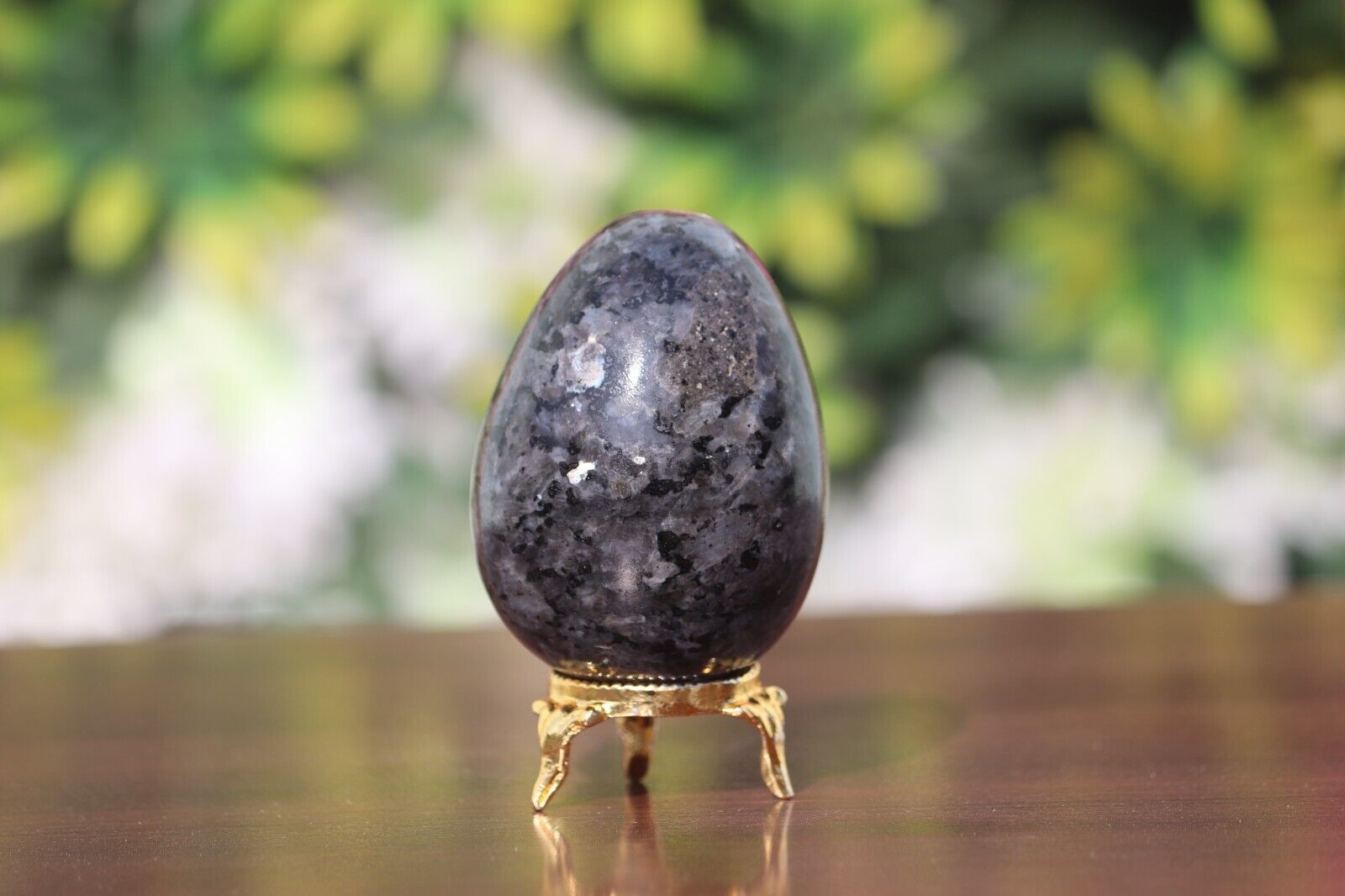 Natural Larvikite Egg Polished Sparkling Symbiotic Black Moonstone w/ Labradorite Gemstone Crystal Mineral Specimen - India + Stand