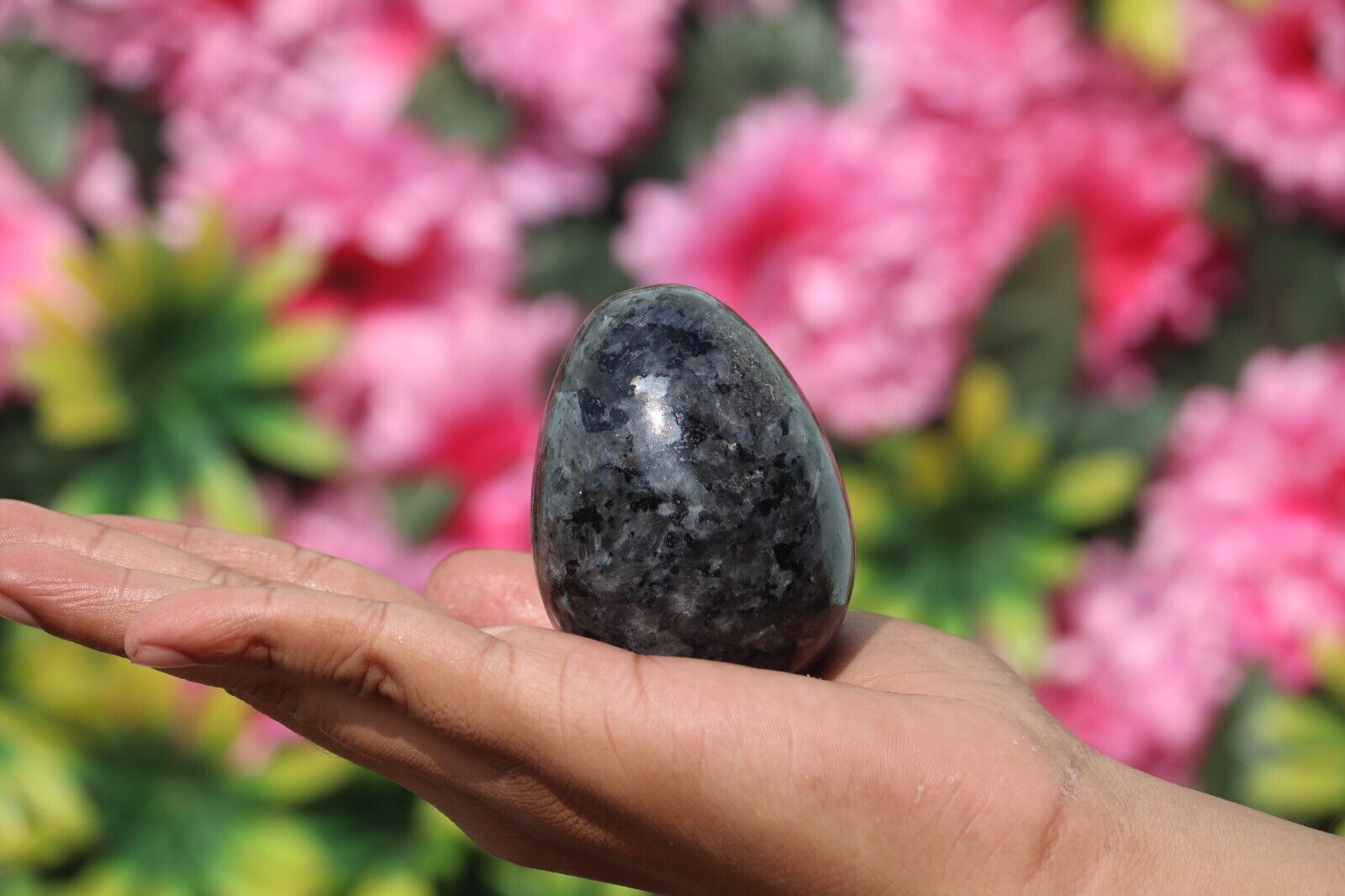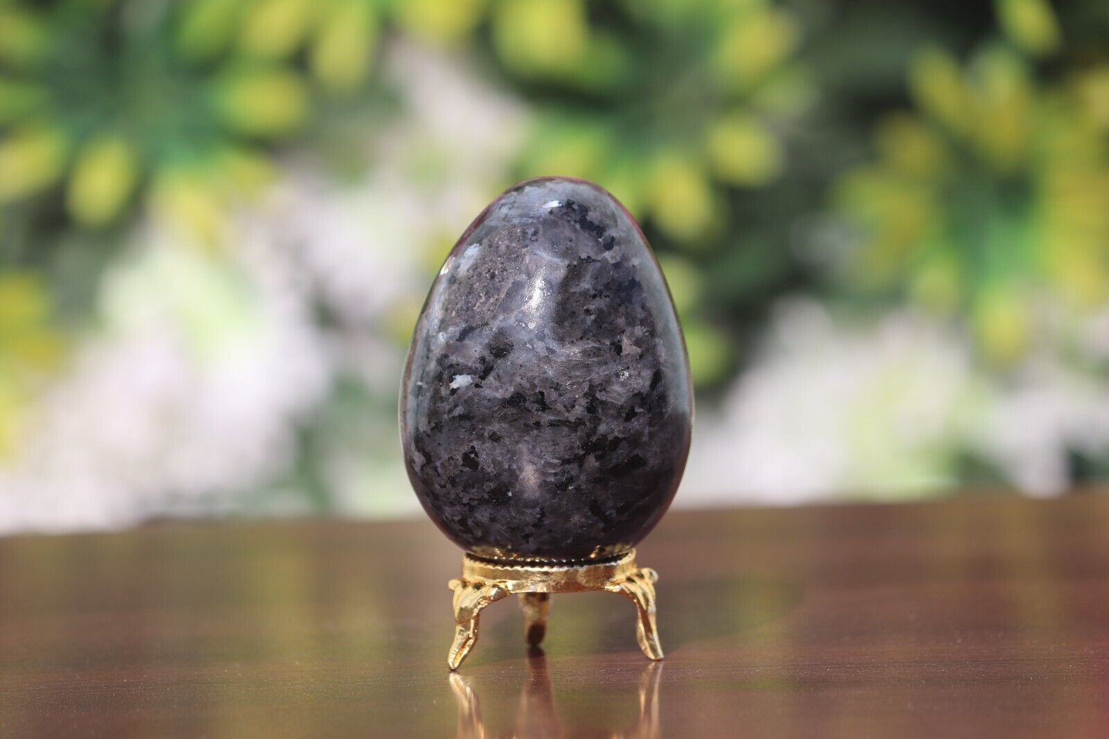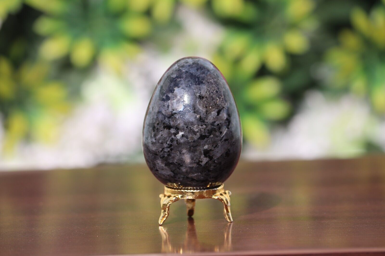 You will receive exactly this Larvikite Egg (see photo, the photos are taken under bright light, stand included)!