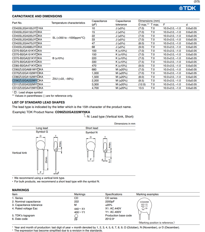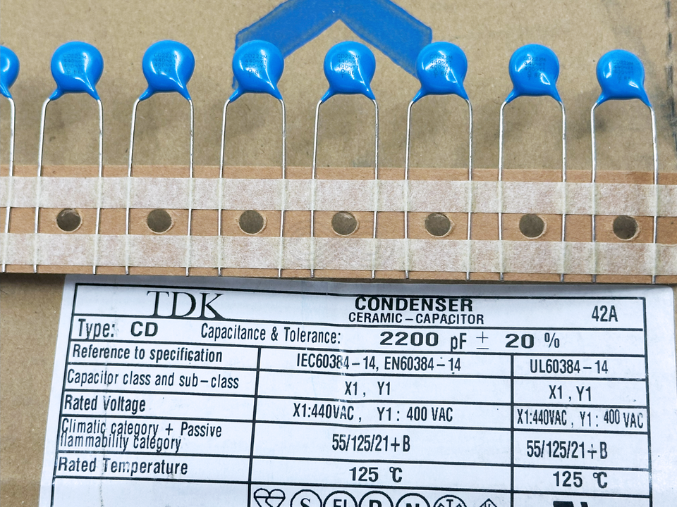 25PCS CD90ZU2GA222MYPKA TDK 2200pF 20% X1/Y1 440VAC/400VAC High Voltage 4kVAC Ceramic Capacitor LS:10mm