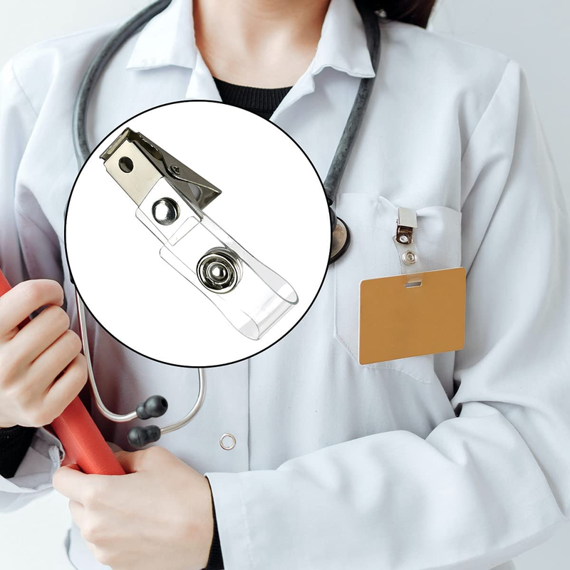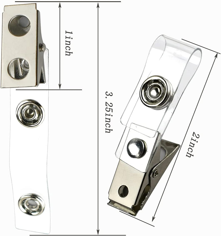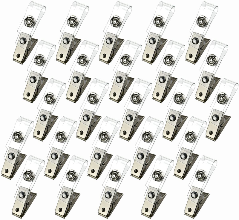 - 25Pcs Metal Badge Clips with Clear PVC Straps for ID Cards, Name Tags, Badge Hol