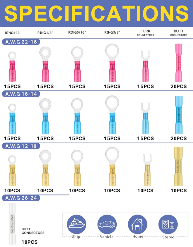 - 260PCS Heat Shrink Wire Connectors Kit Marine Grade Waterproof Crimp Terminals