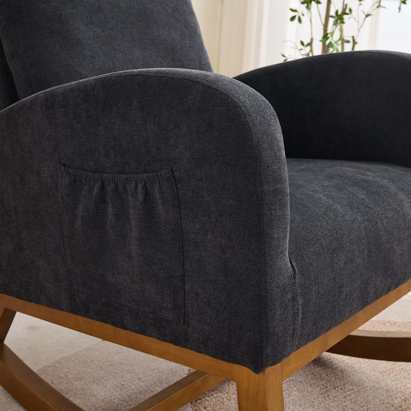 Side Pockets:This rocking chair has side pockets for items like unfinished books and remote controls. Make it more practical for you to use.