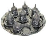 27 Ct Coffee Serving Cup Count Ottoman Turkish Greek Arabic Saucer Old Silver