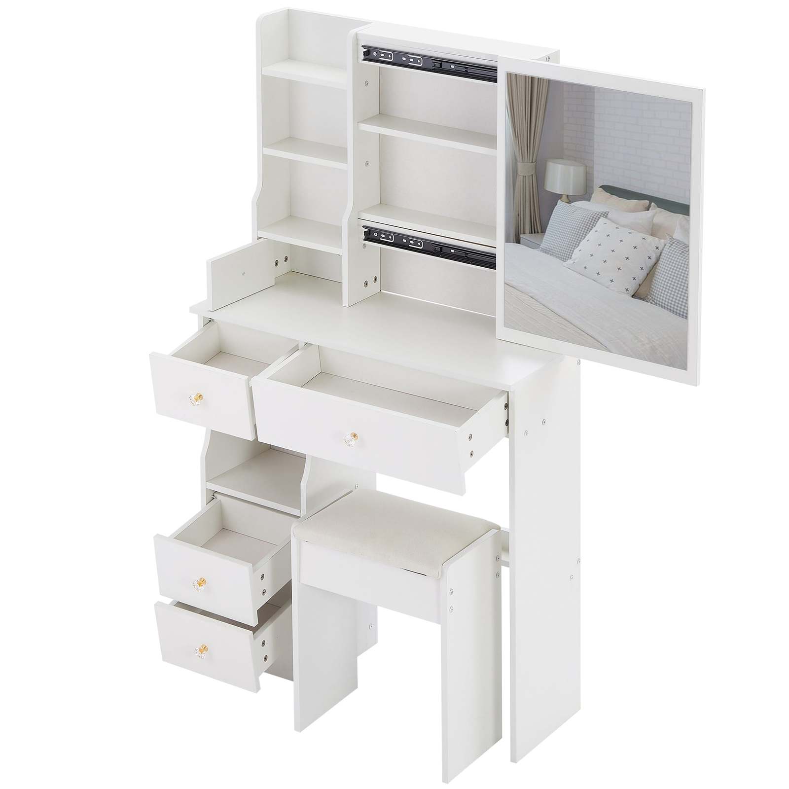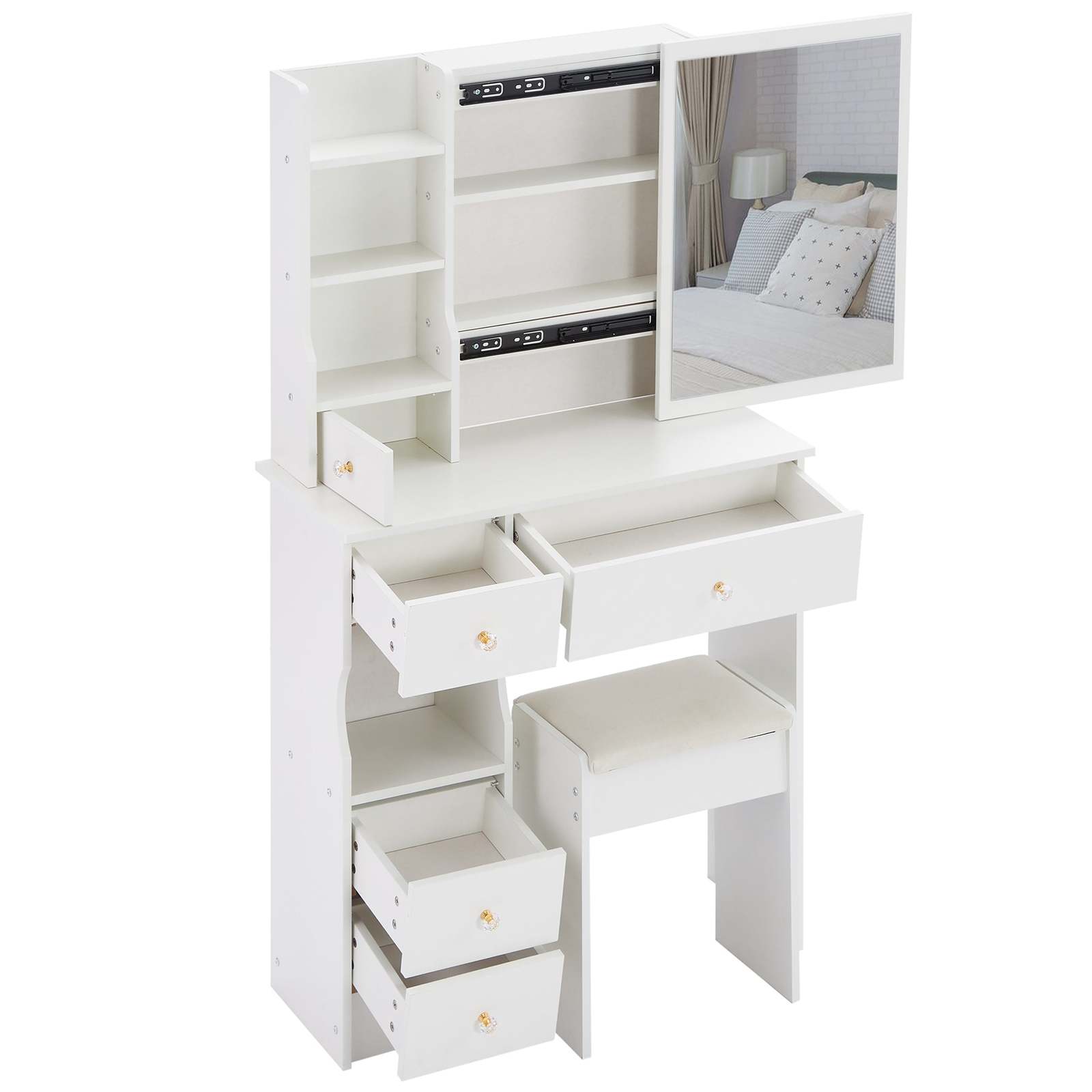 - 29.2" Small Vanity Dresser: Sliding Mirror, Stool, Storage