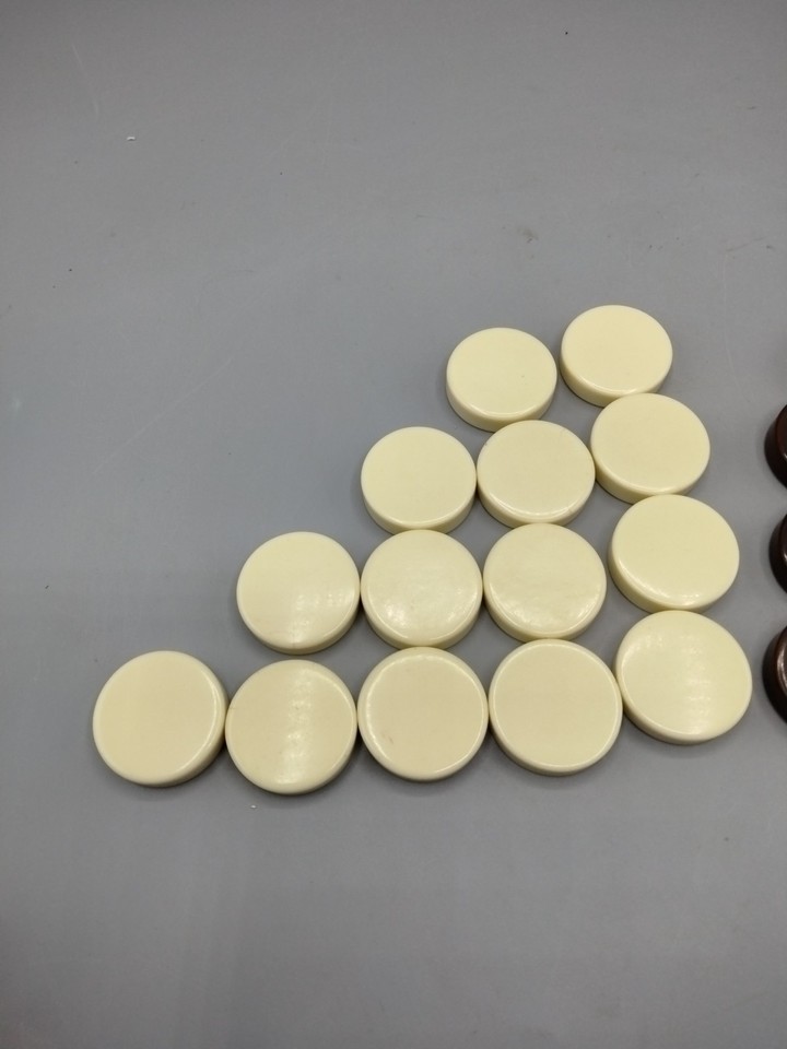 - 29 BAKELITE Backgammon Game PIECES Checkers BROWN IVORY/CREAM—1 3/16” x 1/4”