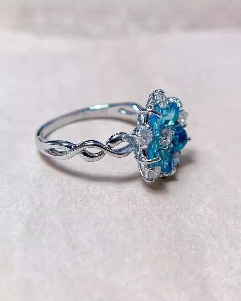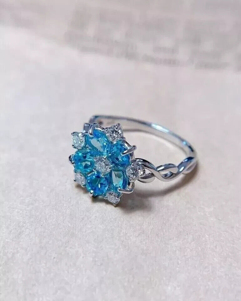 2Ct Simulated Topaz Halo Flower Engagement Ring 14k White Gold Plated Silver