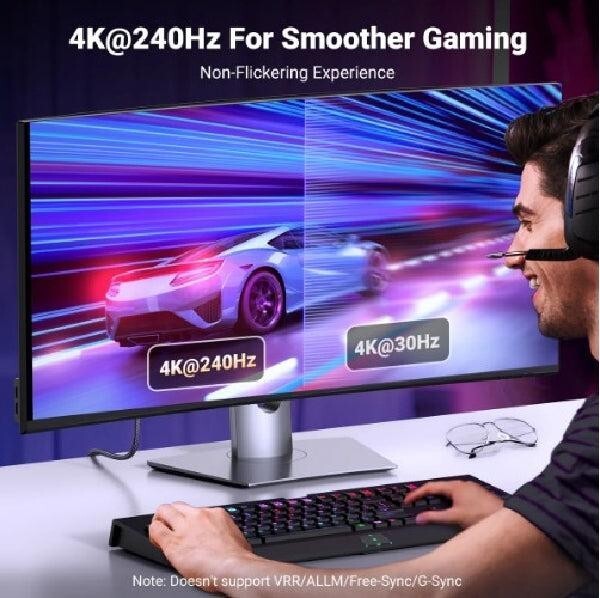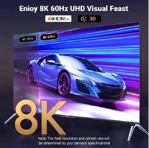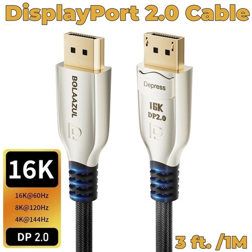 8K Ultra HD Resolution Support: This cable supports up to 8K-60Hz for incredibly sharp and detailed visuals. It also supports 4K-10Hz, 2K-144HZ and 1080p-240Hz, providing flexibility for various resolutions and refresh rates.
