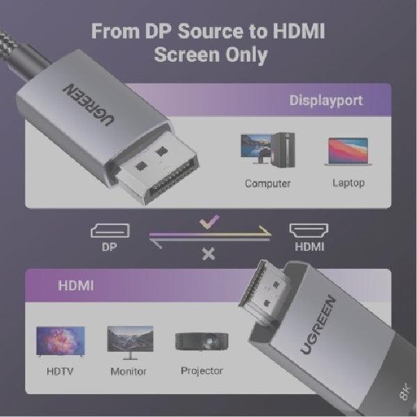 - 2M UGREEN DisplayPort Male to HDMI Male Cable - 8K - Black