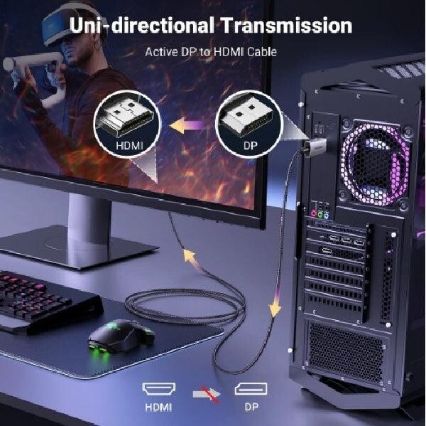 The DisplayPort Male to HDMI Male 8K Cable is designed to deliver high-quality video and audio transmission, making it ideal for both professional and home entertainment setups. With support for ultra-high resolution and refresh rates, this cable ensures crystal-clear visuals and immersive sound.