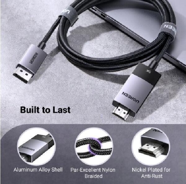 2M UGREEN DisplayPort Male to HDMI Male Cable - 8K - Black