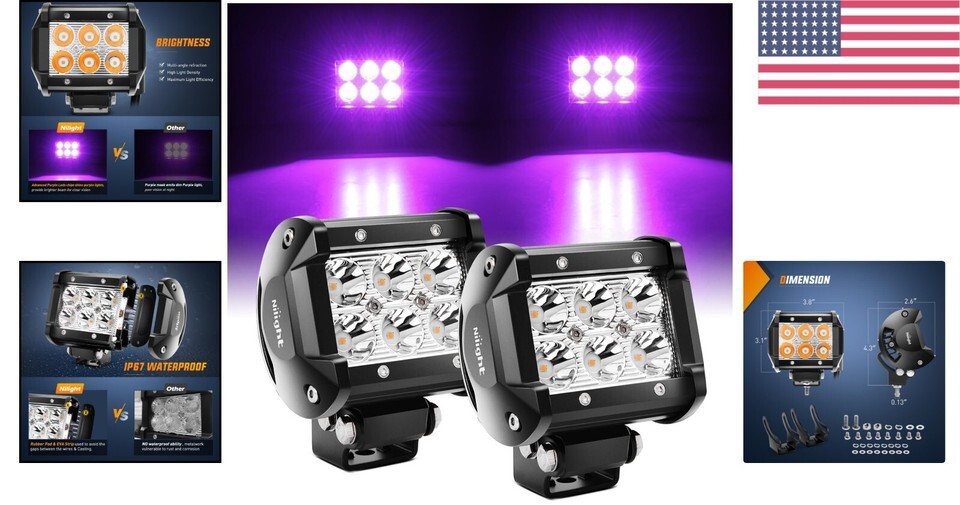 Super Bright Purple Light: Featuring 6 high-performance 3W LED chips delivering a stunning 566.5nm purple light, these pods emit an impressive 790 lumens per pair, enhancing your off-road adventures with vibrant illumination.