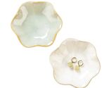 - 2PCS Lotus Leaf Ring Holder Dish Ceramic Trinket Tray White Light Green