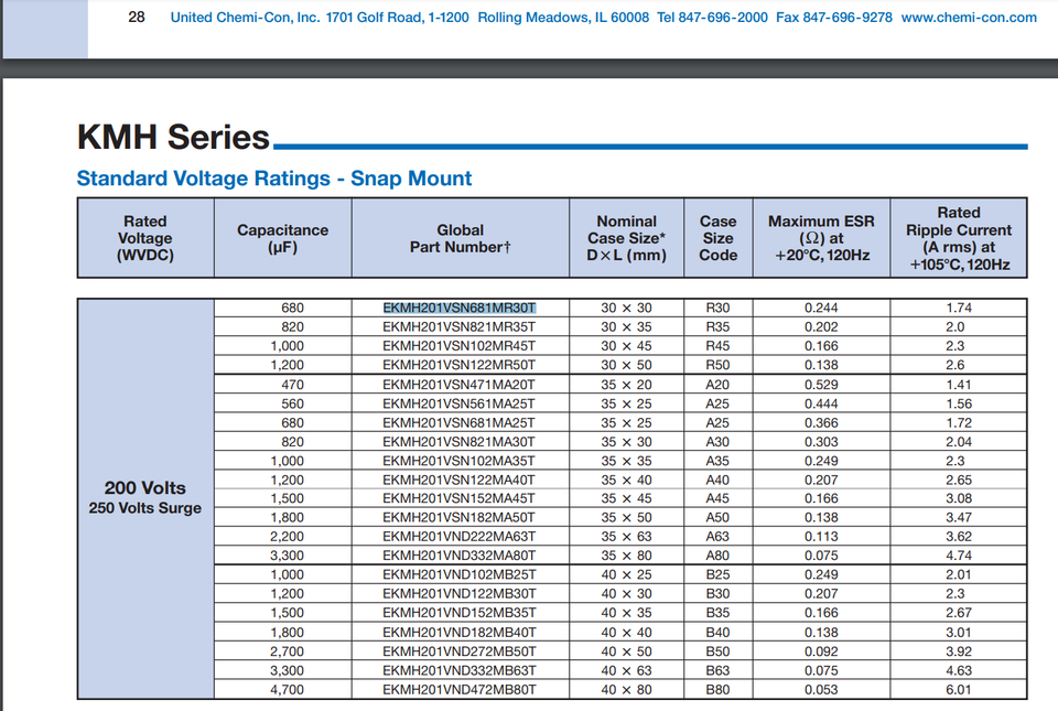 EKMH201VSN681MR30T, 680uF 200V KMH |