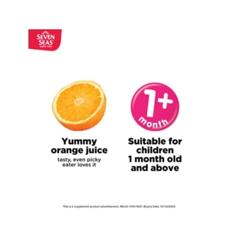 Le sirop multivitamines Seven Seas a l'huile de foie de morue fournit 8 vitamines essentielles et du DHA pour les annees de formation importantes des enfants. Il vient dans le goût delicieux du vrai jus d'orange et n'a pas d'aromes ni de colorants artificiels.