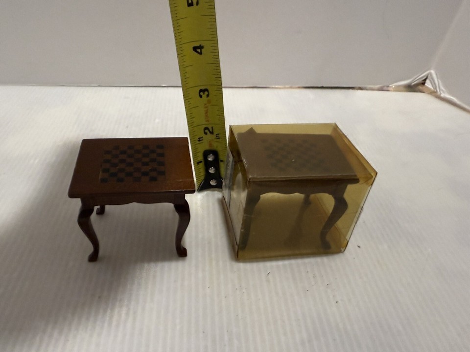 The Mini Dreams 2-piece dollhouse chess checker board table set is a charming addition to any dollhouse. The vintage-inspired desk features a brown color and cottage style design, perfect for adding a touch of artistry to your miniature collection. With a scale of 1:12, this desk is ideal for creating a unique and whimsical scene in your dollhouse.