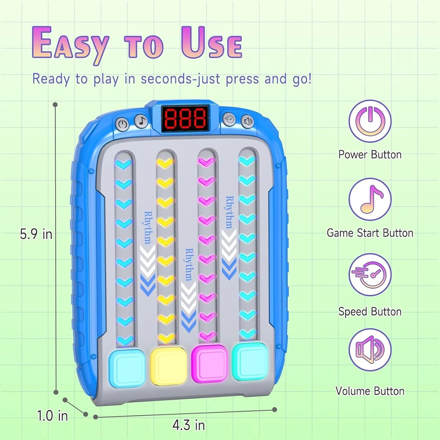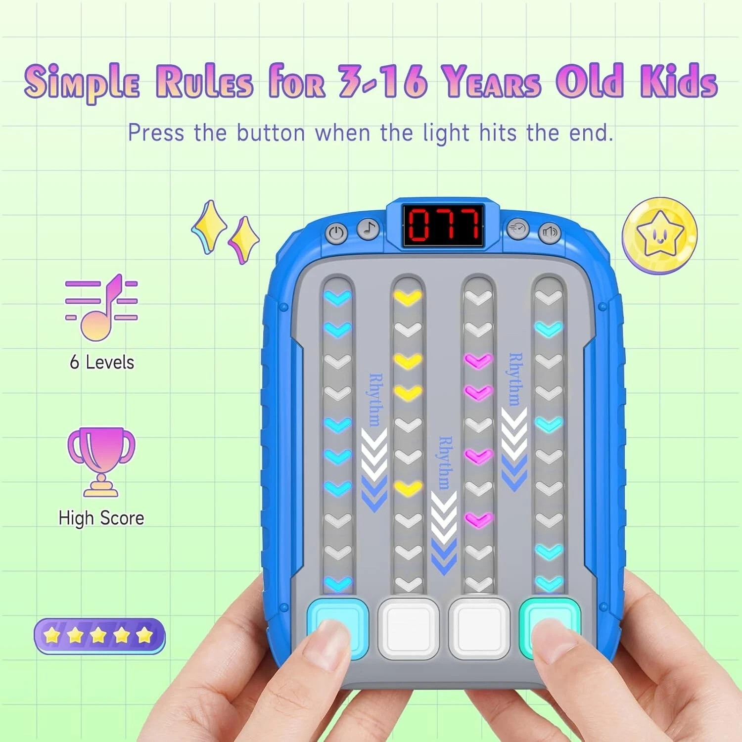 Simple Rules for Kids: Start the game with ?Game Start Button? and follow the lights to score points. With 6 levels of increasing difficulty, it?s simple for beginners yet challenging enough to keep kids engaged for hours. Suitable for kids aged 3-16, making it the perfect gift for birthdays, holidays, or any special occasion.