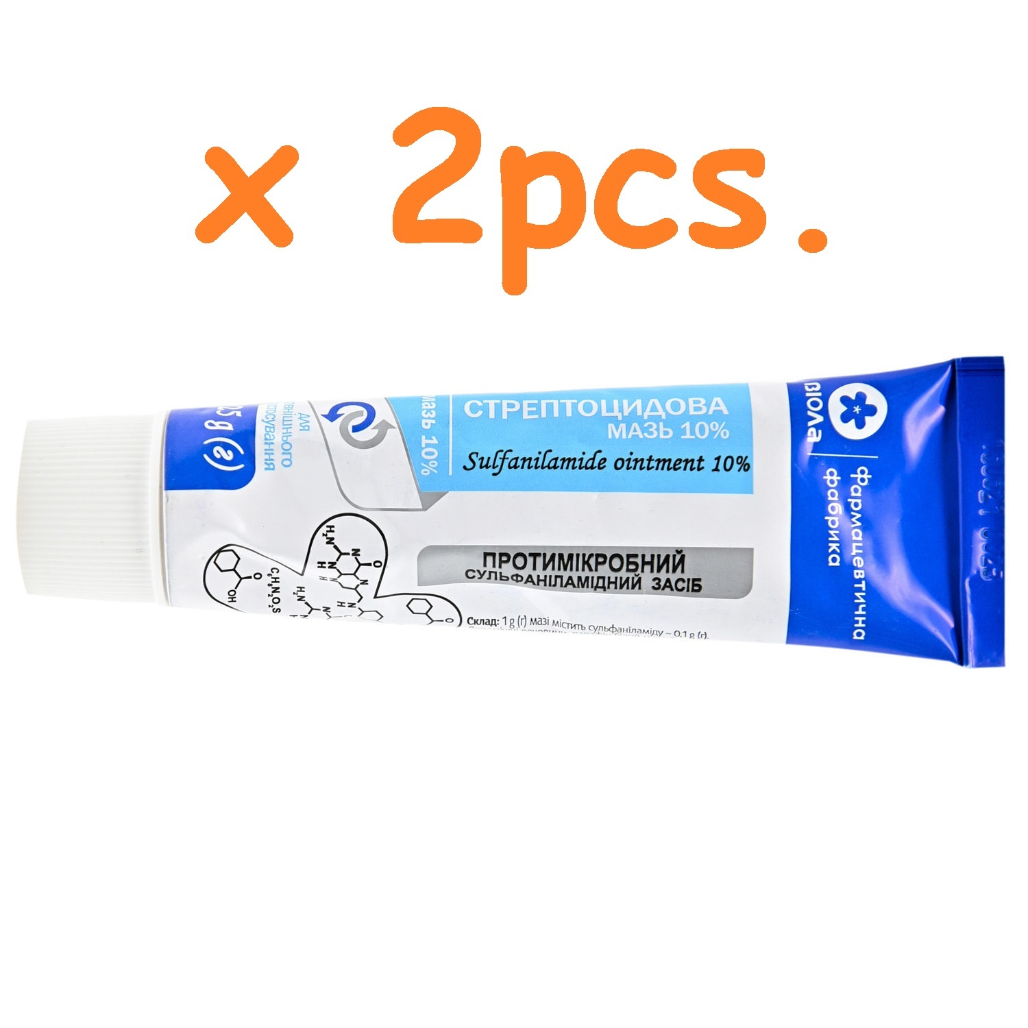 - 2pcs. Streptocid ointment 10% tube 25g x 2pcs =50g , Стрептоцидова мазь 10%, 50g