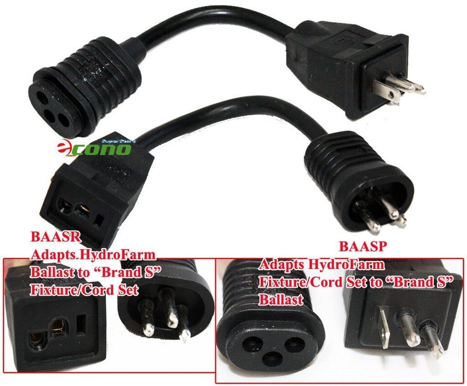 Included in this sale is two 8" BAASP plug adapts a Hydrofarm fixture/cord set to a "Brand S" ballast