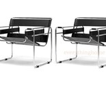 2x Black Faux Leather Strap and Chromed Steel Tubular Frame Accent Lounge Chairs