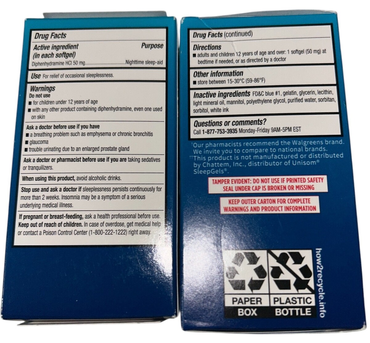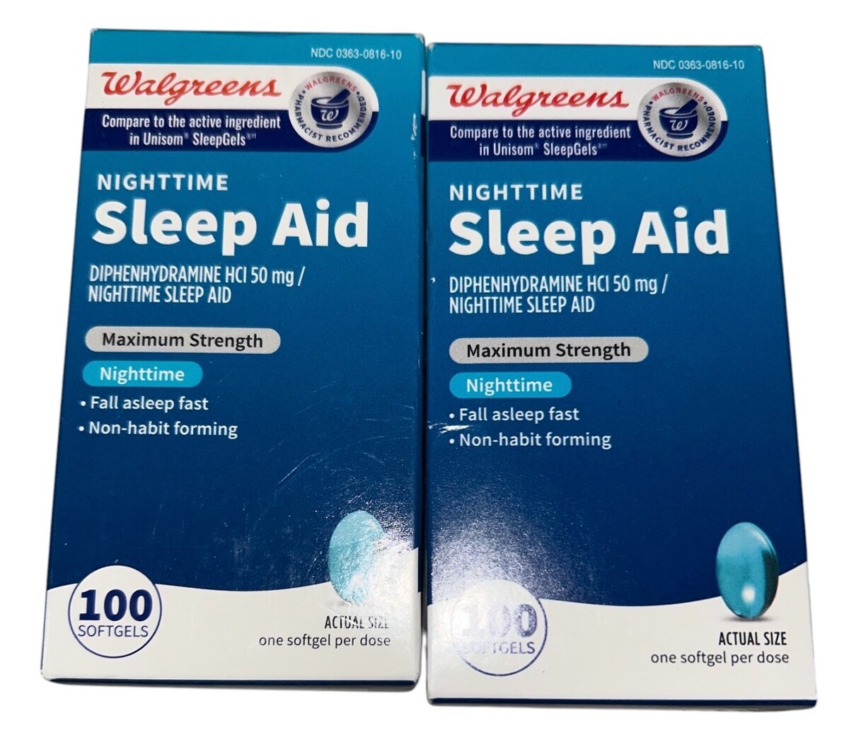 - 2x Walgreens Nighttime Sleep Aid Max Strength, 200 Softgels - EXP: 01/2027