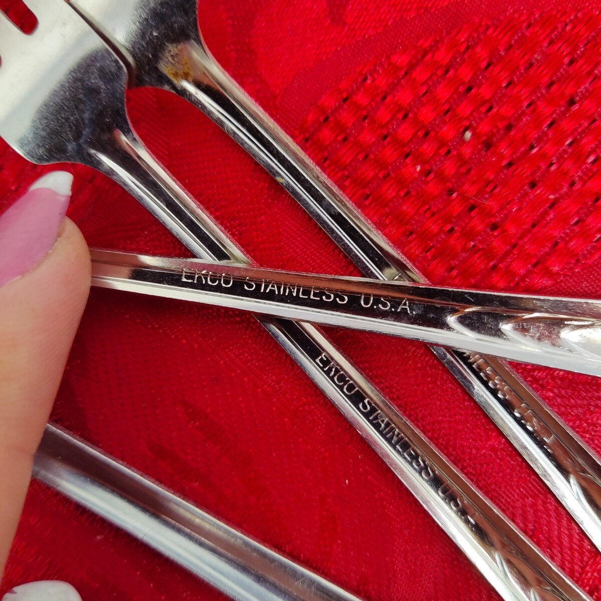 - 3+1 Dessert Forks EKCO STAINLESS SILVERWARE Spoon FLATWARE Kenilworth Cocktail