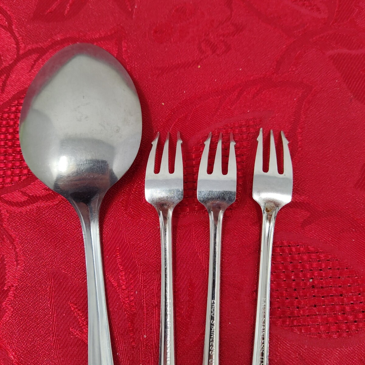 3+1 Dessert Forks EKCO STAINLESS SILVERWARE Spoon FLATWARE Kenilworth Cocktail