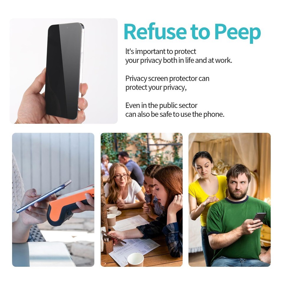 ?[Vidrio templado antiespía de 0.118 in]: para una proteccion superior de tu nuevo telefono, elige vidrio de aviacion ultrafino a nanoescala como material. Seleccione los angulos antimiradas optimos para el revestimiento antiespía para equilibrar la privacidad y la comodidad visual. Este vidrio tambien protege tus ojos de la luz dura, asegurando un efecto visual mas suave.