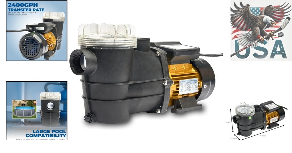 High Transfer Rate: Efficiently transfers up to 2,400 gallons of water per hour, ensuring your pool remains crystal clear.