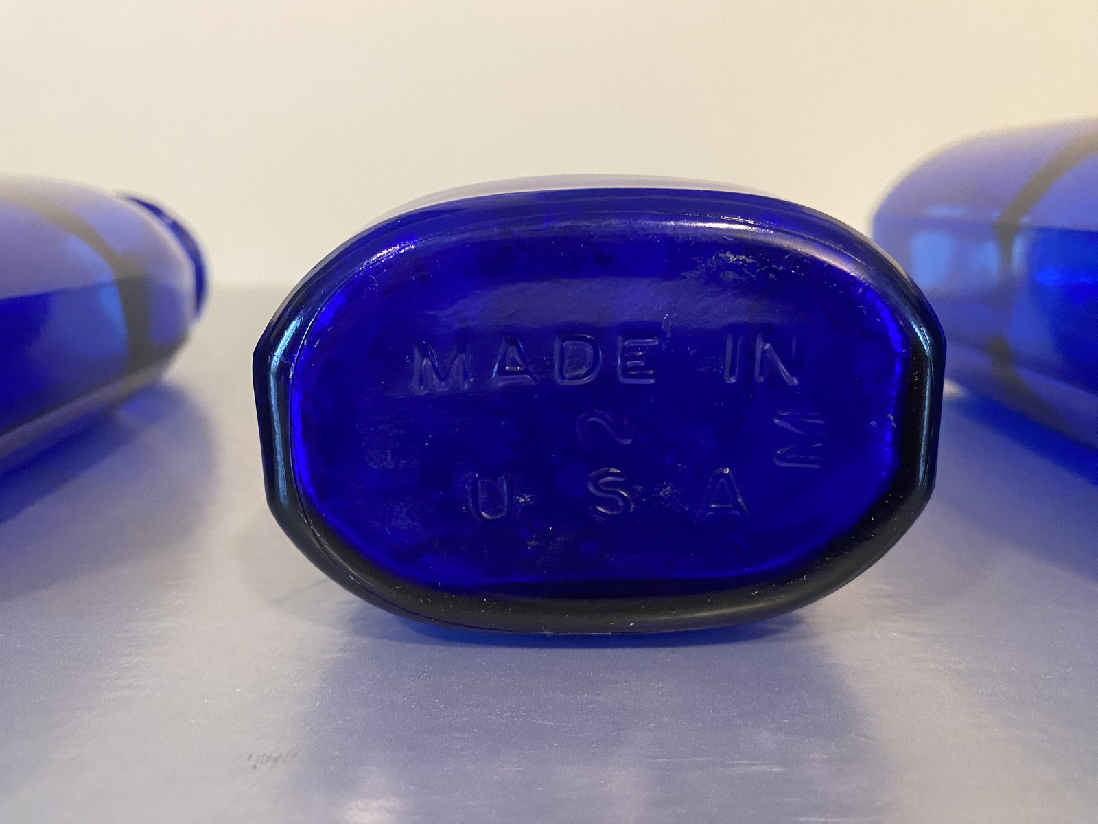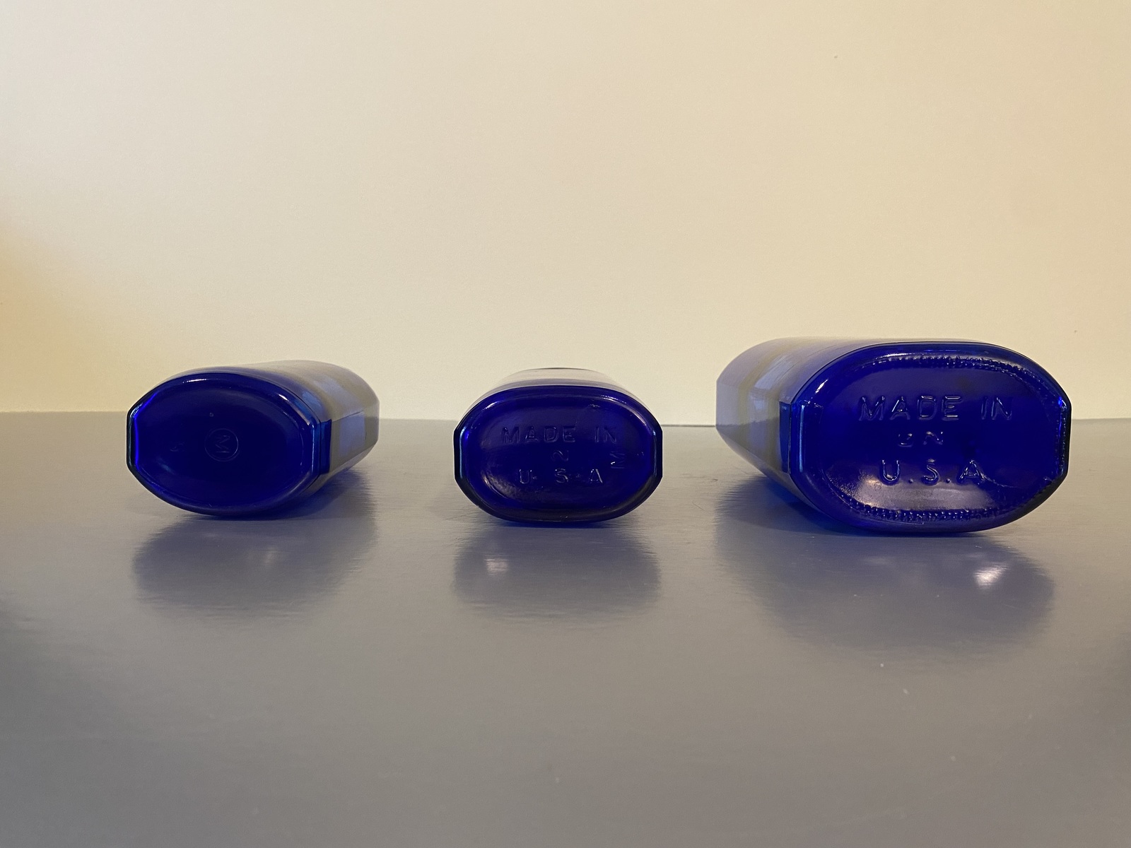 - 3 Antique Cobalt Glass Haley's M.O. From Different Era's