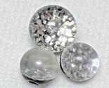 - 3 Antique Round Glass Paperweight Buttons w Silver Glitter 3/8 and 1/2 inch