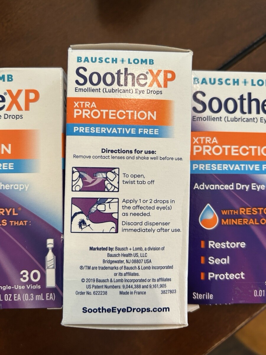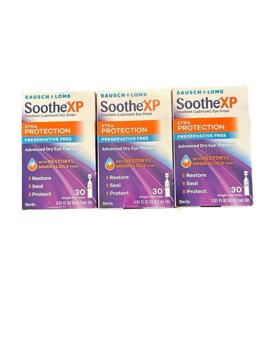 - 3 Bausch + Lomb SootheXP Xtra Protection Dry Eye Therapy 0.1oz Vials Exp.10/2025