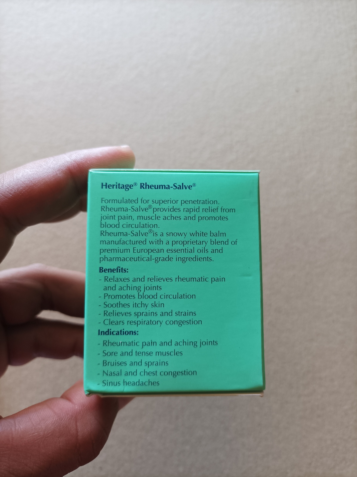 Formulated for superior penetration and efficacy, Rheuma-Salve provides rapid relief from joint pains, muscle aches and promotes blood circulation.