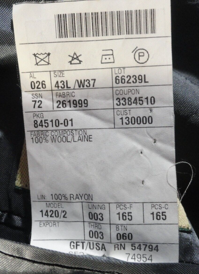 3 BUTTON DESIGNER JOSEPH ABBOUD NORDSTROM GRAY SUIT JACKET 43L / 43 LONG